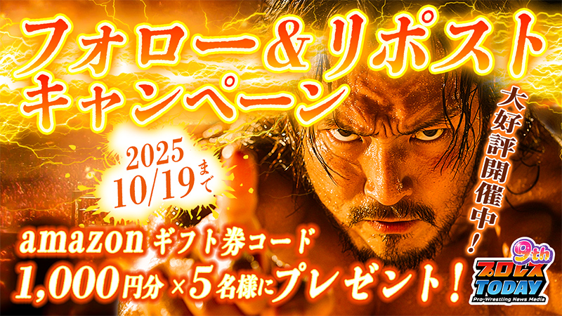 <amazonギフト券コード1,000円分が当たる>プロレスTODAY公式Xフォロリポキャンペーン実施中!