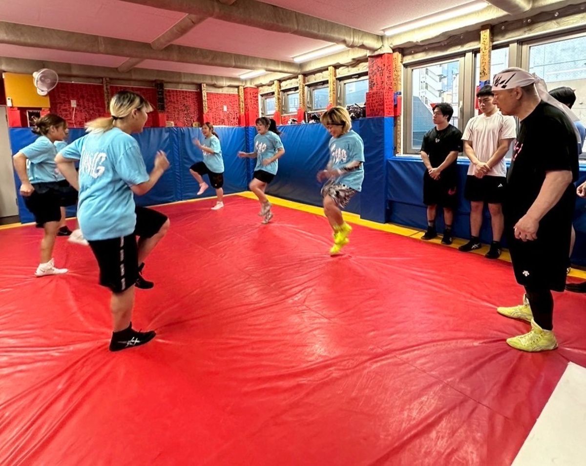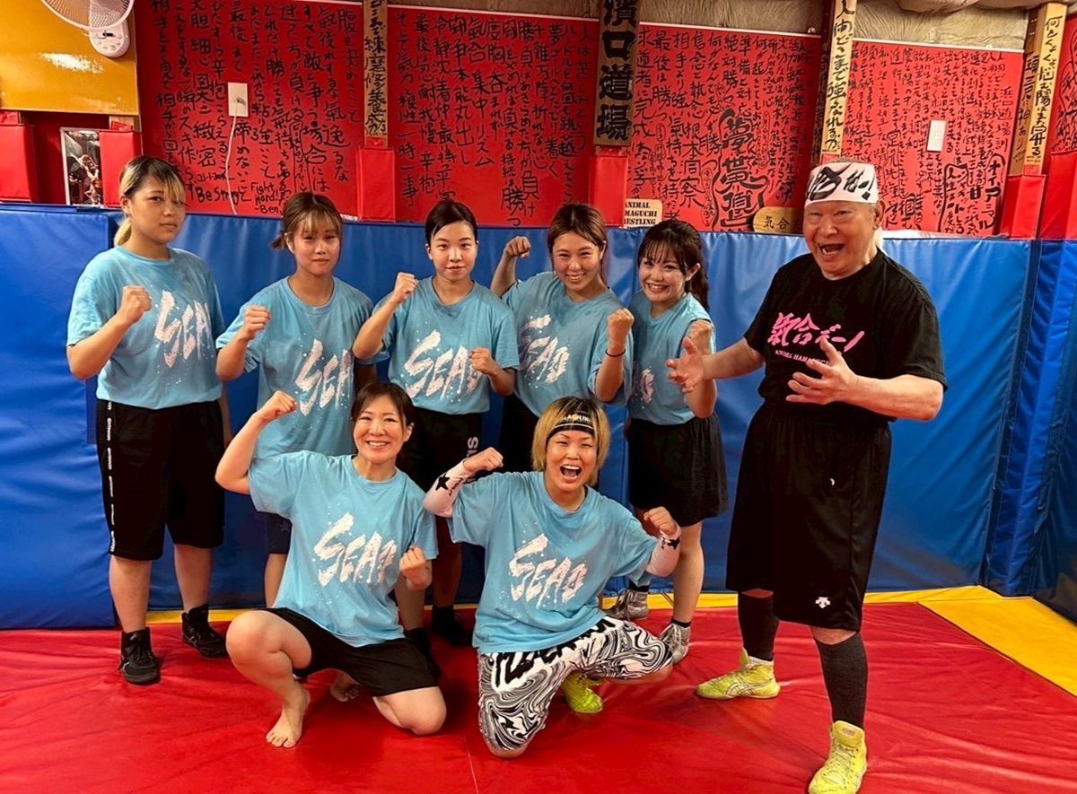 記念大会を目前に控え、SEAdLINNNGの選手たちは、南月たいよう代表の故郷である「アニマル浜口ジム」で、浜口京子さんの父であるアニマル浜口会長の指導を受けた。