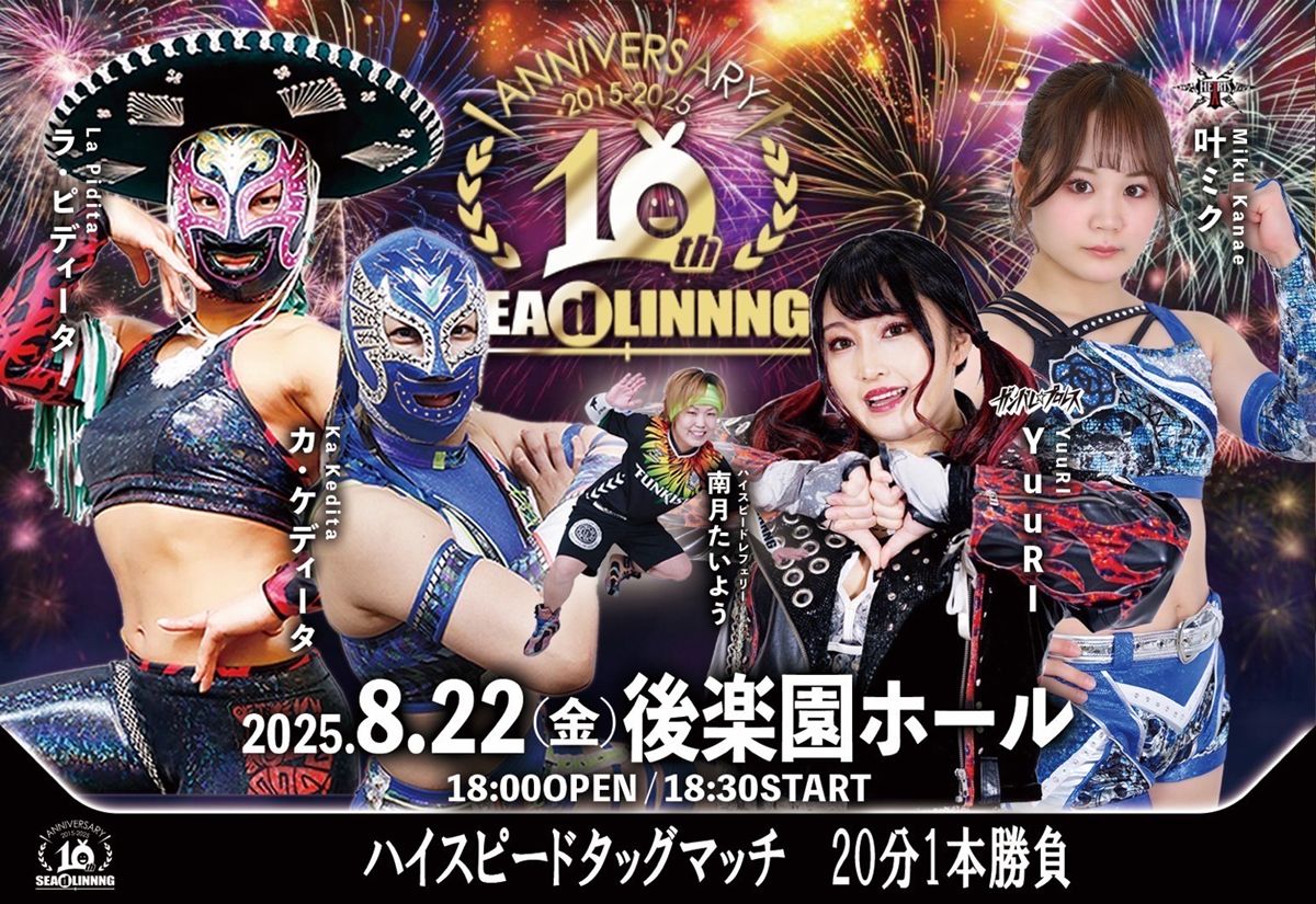 女子プロレス団体SEAdLINNNGは、8月22日(金)に後楽園ホールで開催される10周年記念大会『SEAdLINNNG〜10周年記念大会〜』の追加対戦カードを発表。