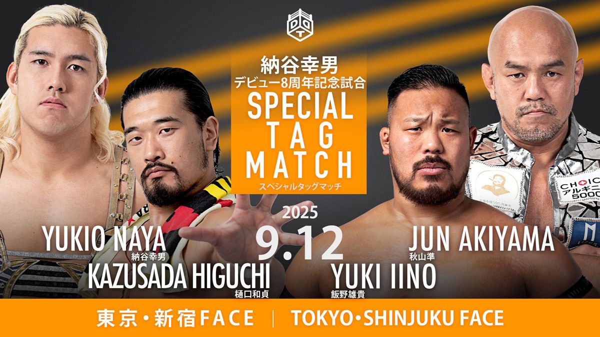 最大の注目は、納谷幸男のデビュー8周年記念試合だ。DDTヘビー級戦線の象徴の一人である樋口和貞と重量級タッグを結成。