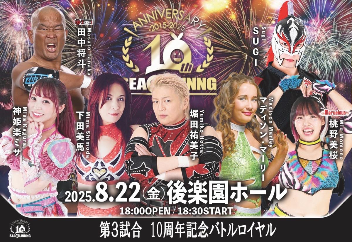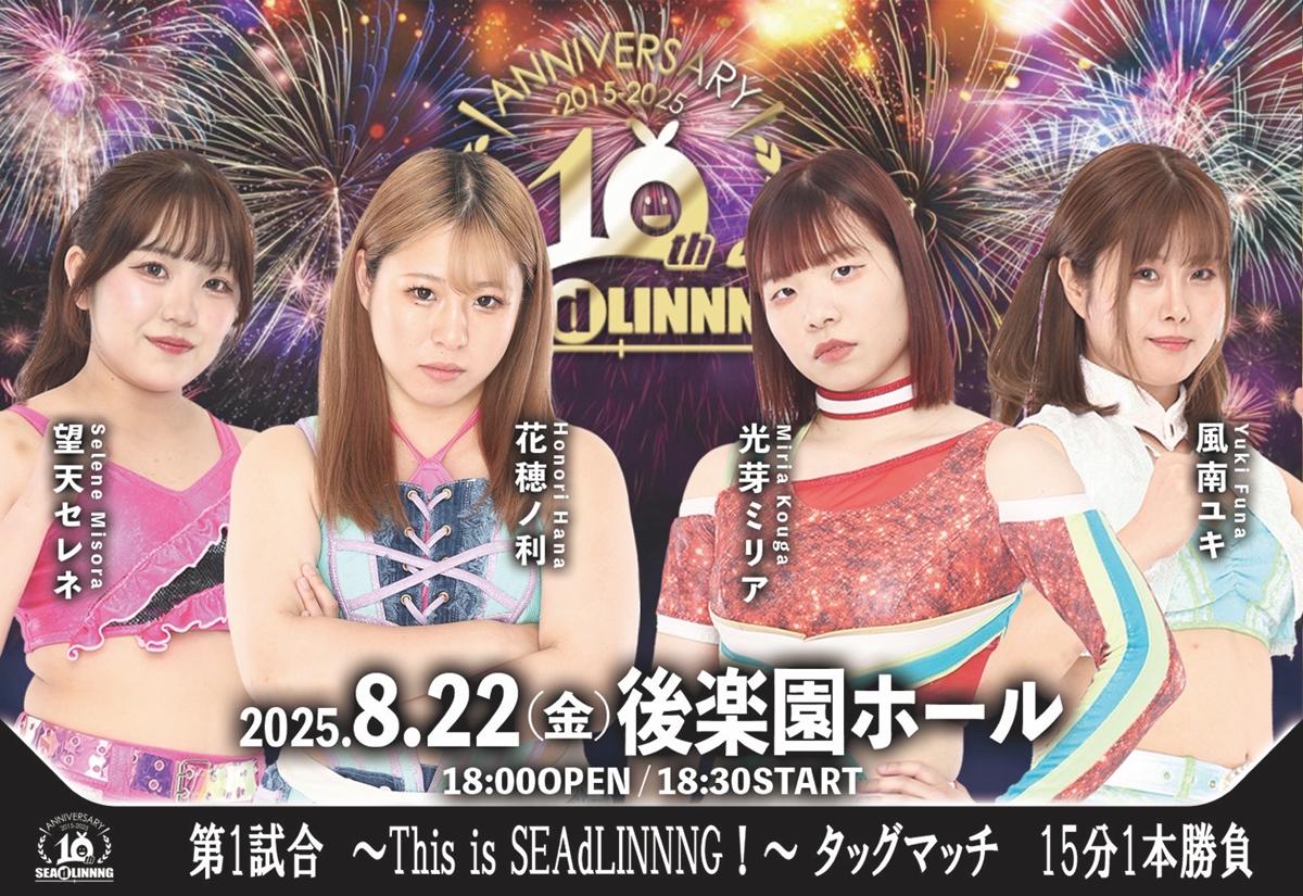 女子プロレス団体SEAdLINNNGは、本日8月22日に設立10周年の節目を記念する大会をプロレスの聖地・後楽園ホールで開催する。