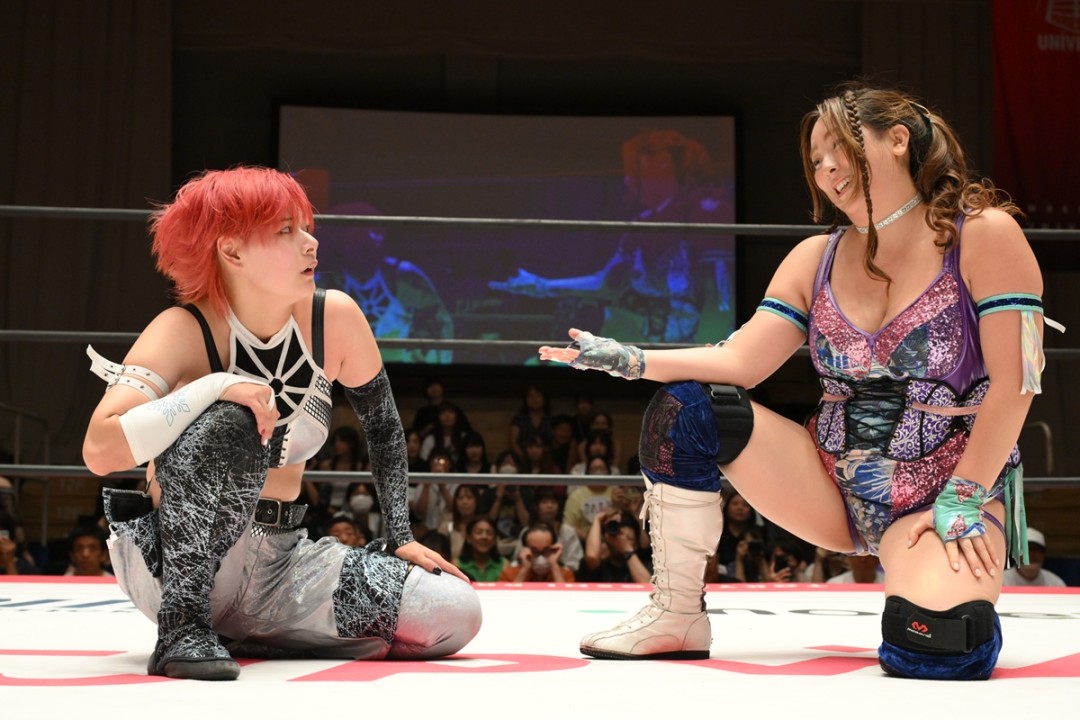 東京女子プロレスが8月23日、東京・後楽園ホールで「東京プリンセスカップ」を開催。一騎打ちをおこなったまなせゆうなが凍雅へタッグ結成を提案した。