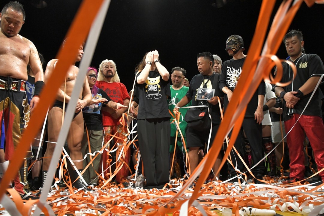 最後は橋本さんの追悼、プロレスラー引退の10カウントゴングが捧げられ、町田達哉リングアナの涙のコールで追悼大会が幕を閉じた。