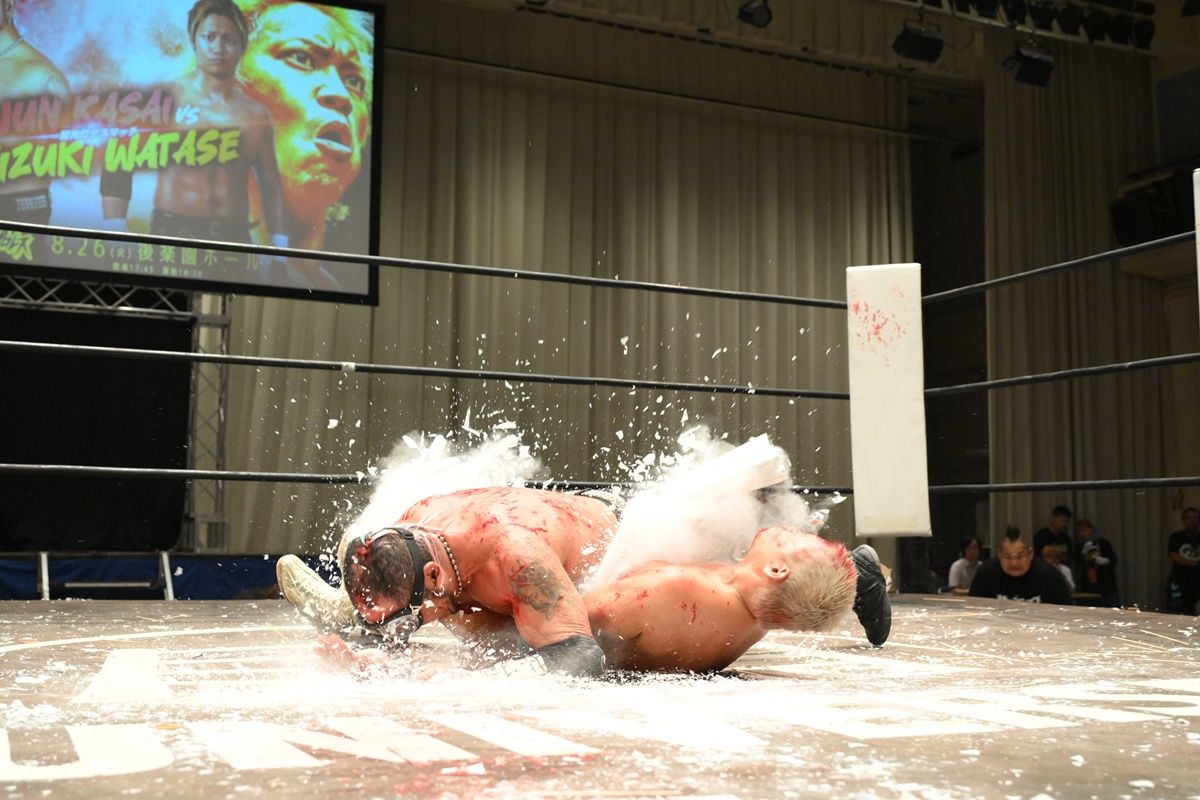 葛西は「男・瑞基、俺っちとの9年前の約束守ってくれてありがとよ。おまえみたいな男前がデスマッチやる必要なんてホントはねぇんだよ。マスクもいい、身体能力もある。プロレスセンスもある。それでもやりたいんだな? 病みつきになったか? この痛み、この生きてる充実感が、デスマッチは癖になるんだよ。だから俺はあえて言った。デスマッチファイター渡瀬瑞基のデビュー戦だって。デスマッチデビューおめでとう!」と渡瀬を称えた。