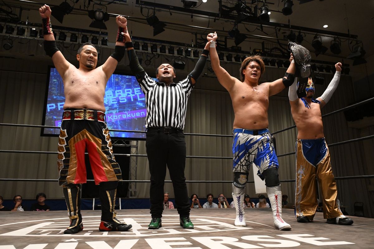 〇石井慧介&入江茂弘&和田拓也(9分12秒、片エビ固め)阿部史典&MAO&前口太尊●