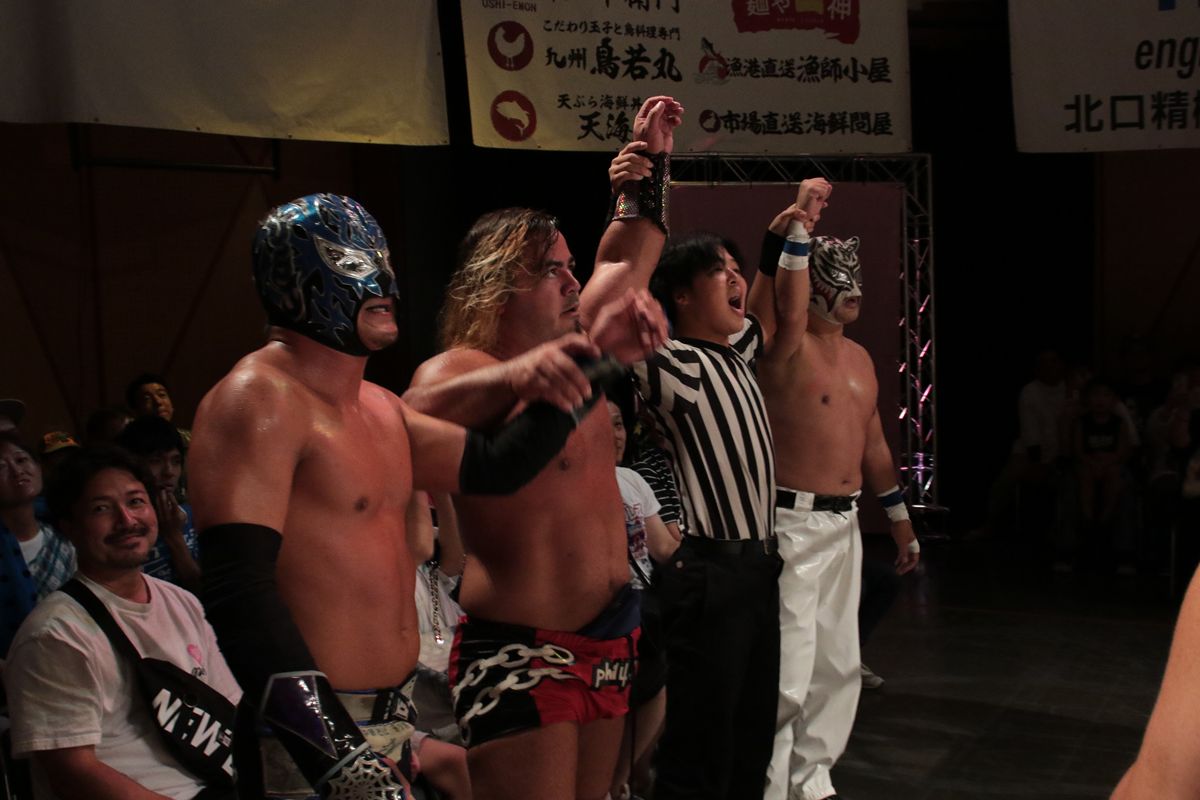 最後は丸め込み合戦からタコヤキがビリーの隙をついてタコヤキボトムで勝利!