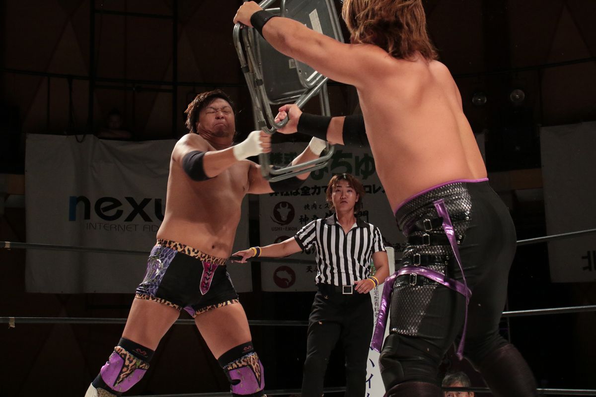 セミファイナルの大阪ライトヘビー級選手権試合でも、王者・大瀬良泰貴が同門のTiiiDAを退け、4度目の防衛を果たした。真夏の祭典で行われた2大タイトルマッチは、いずれも王者が盤石の強さを見せつけ、王座を守り抜く結果となった。大会は第1試合から乱闘騒ぎが起こるなど、終始熱気に包まれた。