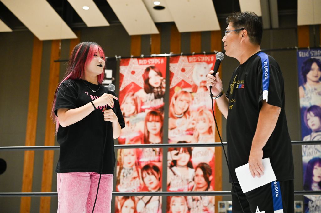 このロケをきっかけに交流が生まれ、真中は2・24に続く8・3昼夜大会に来場し、リング上からあいさつ。ここで再び吏南と絡み、吏南のインタビュー記事もネタにして“真中の逆襲”とばかりに名コンビぶりを披露した。また、リングサイドで試合を観戦。元・野球選手&監督からスターダムのプロレスはどのように映ったのだろうか?