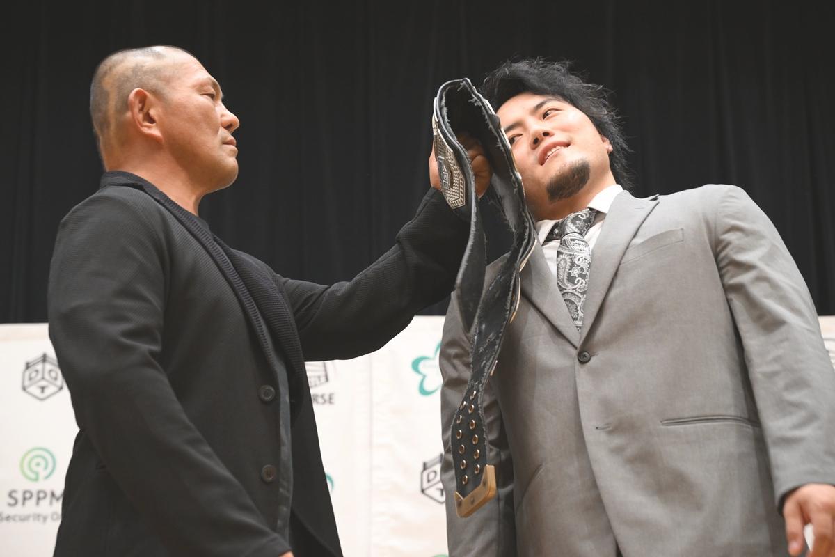 DDTプロレスが8月27日、都内で夏のビッグマッチ「WRESTLE PETER PAN 2025【DAY1&2】」(30日、ひがしんアリーナ=墨田区総合体育館&31日、後楽園ホール)に向けて公開記者会見を開いた。8・31後楽園で行なわれるDDT UNINERSAL王座戦の調印式はMAOがベルト奪還を宣言も、王者・鈴木みのるは戦慄の予告をした。