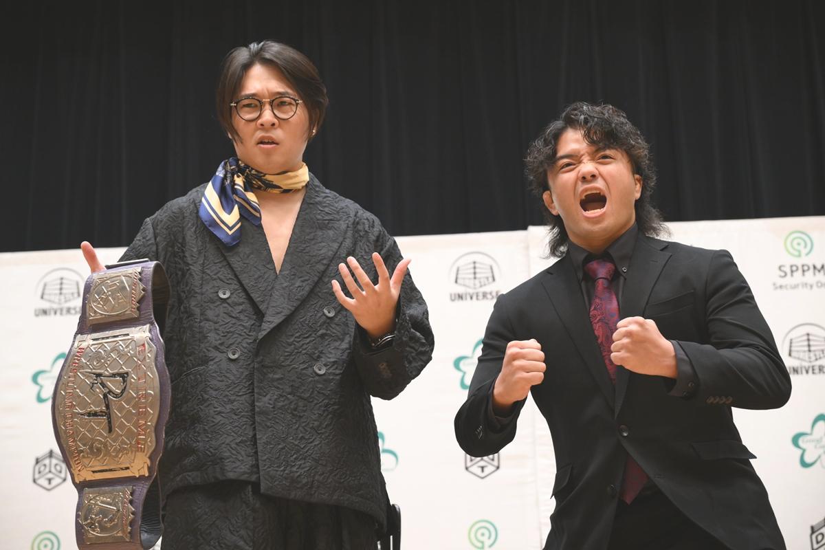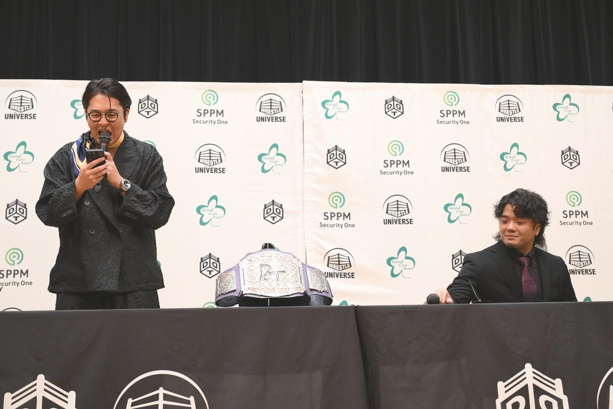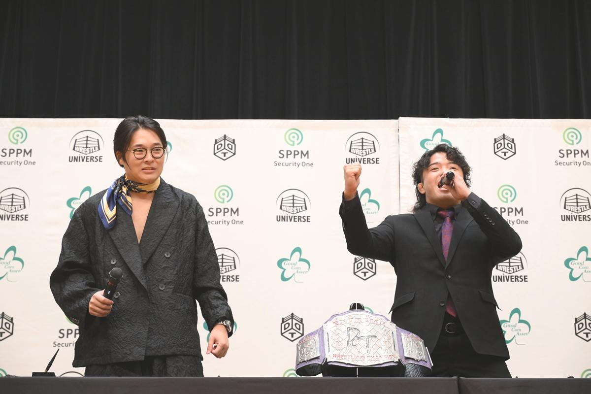 DDTプロレスが8月27日、都内で夏のビッグマッチ「WRESTLE PETER PAN 2025【DAY1&2】」(30日、ひがしんアリーナ=墨田区総合体育館&31日、後楽園ホール)に向けて公開記者会見を開いた。【DAY1】でのDDT EXTREME選手権試合~自分のライフは自分で稼げ!!プロレス人生ギリギリデスマッチ!で高鹿佑也とのV2戦に臨む王者のTo-yが他力での防衛を期した!?