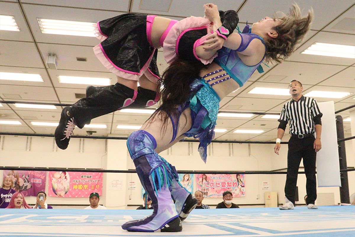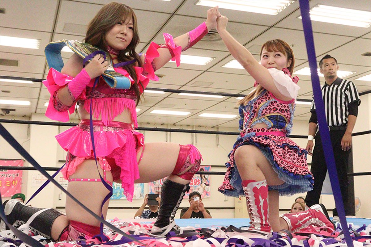女子プロレス団体アイスリボンは8月31日、横浜産貿ホールで大会を開催した。メイン格の第5試合では、ICE×∞王者の勝愛実と神姫楽ミサが新タッグ「ヴィクトリア・ピンキー」を結成し、初陣を勝利で飾った。神姫楽が元タッグパートナーのしのせ愛梨紗から、想いを込めたセントーンで直接勝利を奪い、リング上には複雑な人間模様が交錯した。