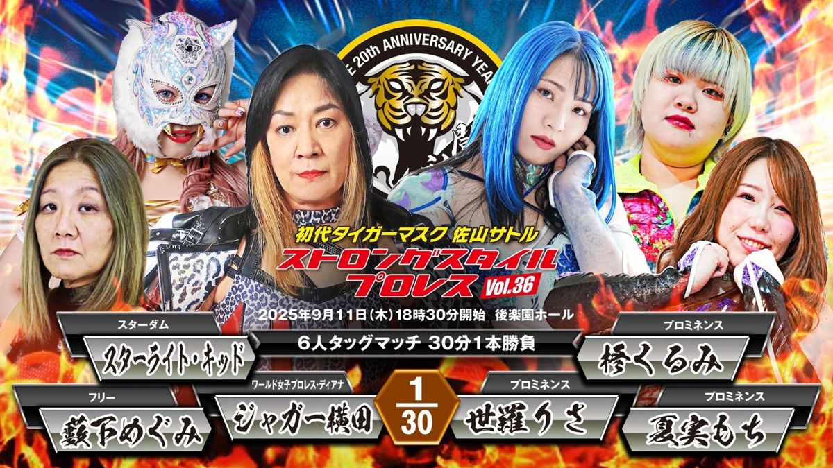 初代タイガーマスク 佐山サトルが創設した「ストロングスタイルプロレス」が、9月11日に東京・後楽園ホールにて20周年記念大会『初代タイガーマスク ストロングスタイルプロレスVol.36』を開催。団体の垣根を越えた豪華絢爛な追加対戦カードが発表された。