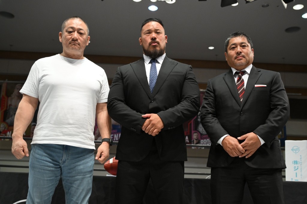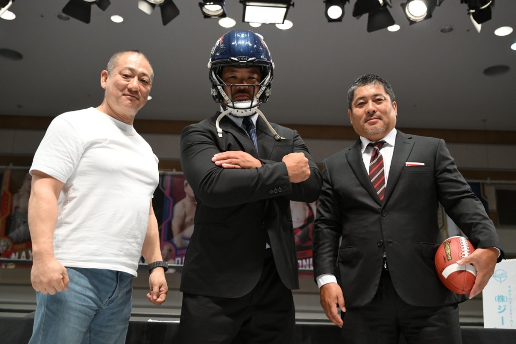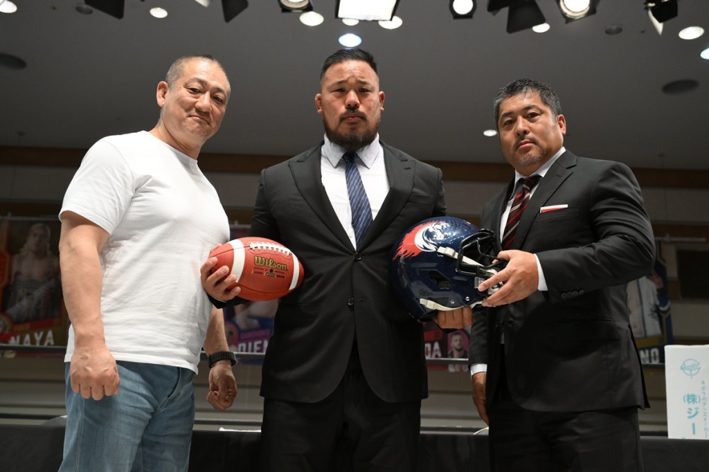今後、プロレスとアメフトの兼ね合いについて、髙木副社長は「登録メンバーになって、試合出場となれば、それを優先してもらって。DDTはスケジュールが合えば出てもらう。過去にブロック・レスナーがアメフトに挑戦した例もありますし、彼の思いを後押ししたい」と答えた。