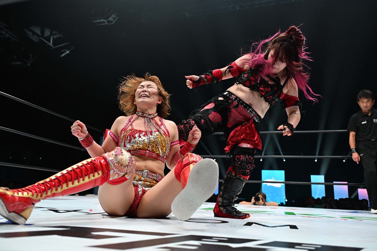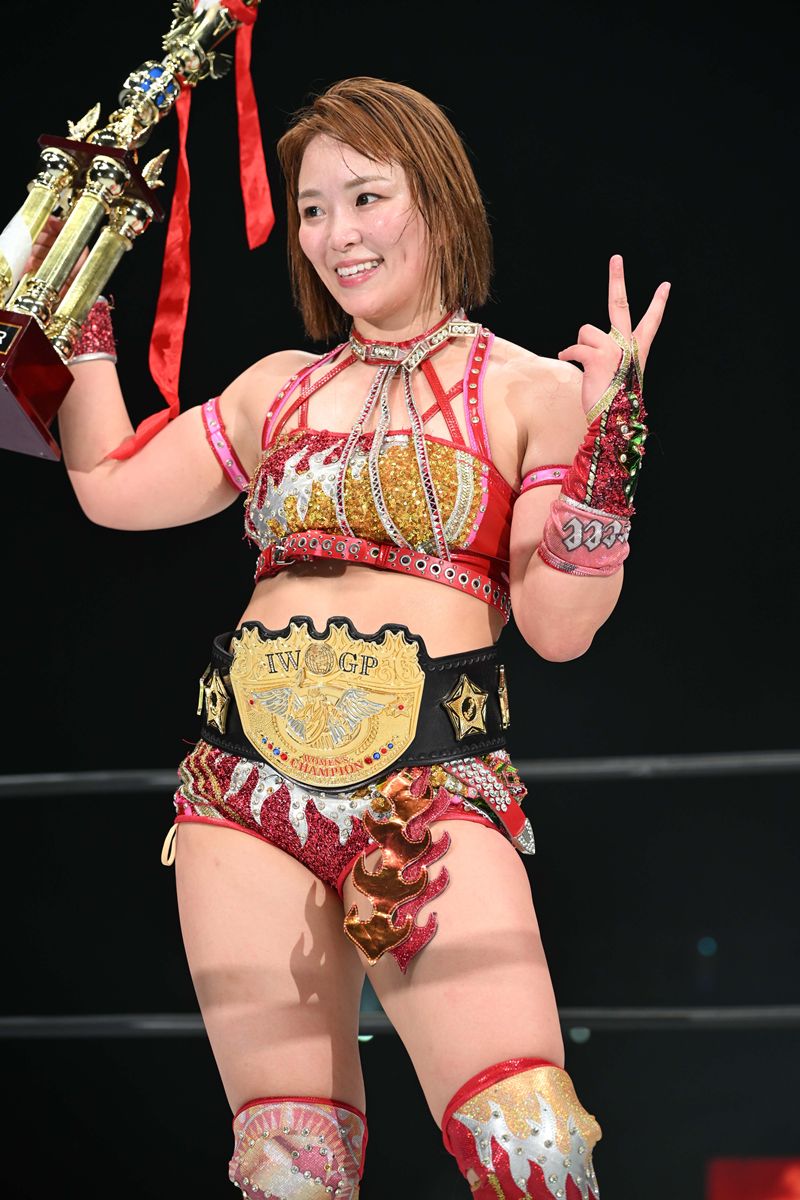 「私このIWGP女子のベルトはスターダムの選手だけじゃなくて、世界中の選手たちとやっていきたいです。世界に通用するベルトだと思っているし、世界中で私のベルトを狙ってるヤツいるんじゃないの?私は逃げも隠れもしない。待ってるから」