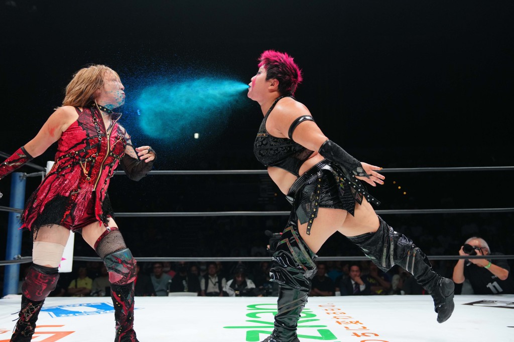 女子プロレス団体スターダムの9月6日、神奈川・横浜武道館大会で、H.A.T.E.の刀羅ナツコとOZアカデミー女子プロレスの尾崎魔弓の注目のシングルマッチが行われた。