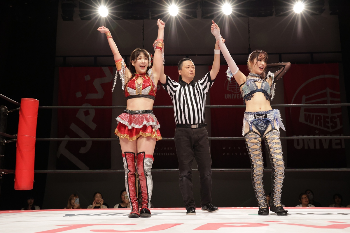 マイクを持った山下が「今日は女性限定ということで、これはこれでいいね。めちゃめちゃ応援してくれて。東京女子って、いつもファンの方がやさしいし、この空間が私は好きなんだよね」と言えば、凍雅は「女性限定興行のメイン、2回連続なんですけど、それよりも成長した姿を見せられたし、女の子の前でキャーキャー言われて、うれしかったです。まだまだ魅力が詰まった東京女子なので見に来てくれるとうれしいです」と笑み。続けて、山下は「いつでもどこでも待ってるし、東京女子を大好きでいてくれるみんなのために、ここで全力で戦います。これからも応援よろしくお願いします! 今日は来てくれてありがとうございました。また来てください! 限界、自分で決めんなよ!」と締めくくった。
