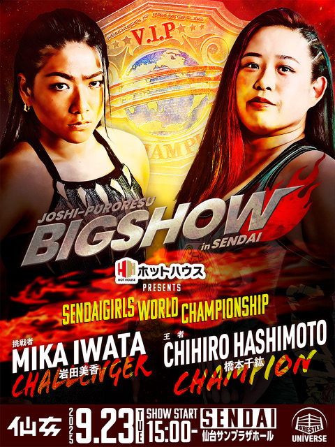 メインイベントでは、団体の至宝であるセンダイガールズワールド選手権試合、王者・橋本千紘 vs 挑戦者・岩田美香の一戦が決定。