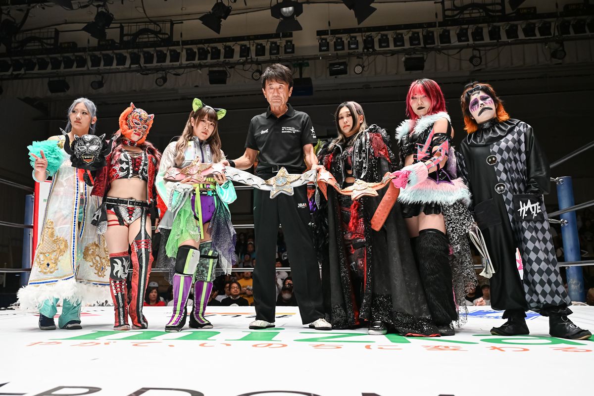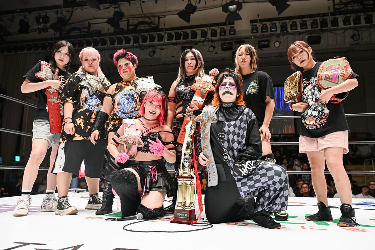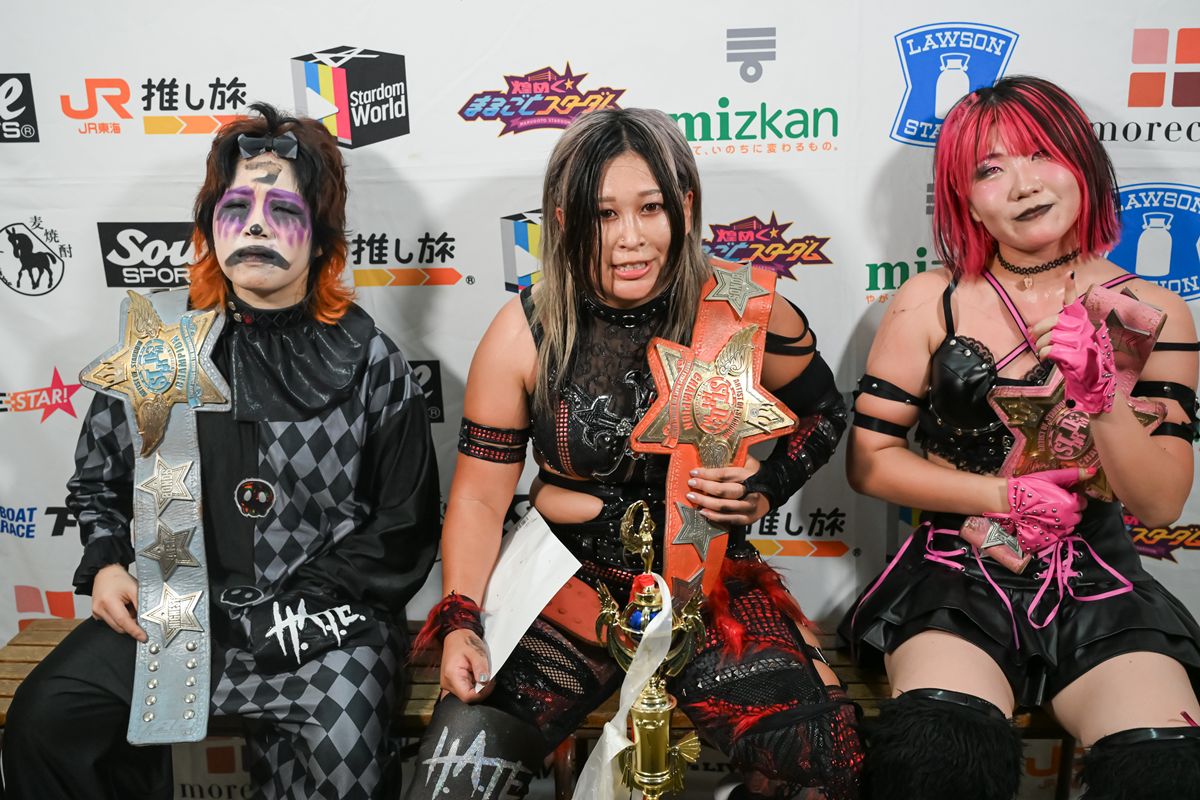 女子プロレス団体スターダム9月10日の東京・後楽園ホール大会で行われたアーティスト・オブ・スターダム選手権試合で、挑戦者組の小波&吏南&フキゲンです★が、王者組のスターライト・キッド&AZM&天咲光由を破り、第35代王座を戴冠。