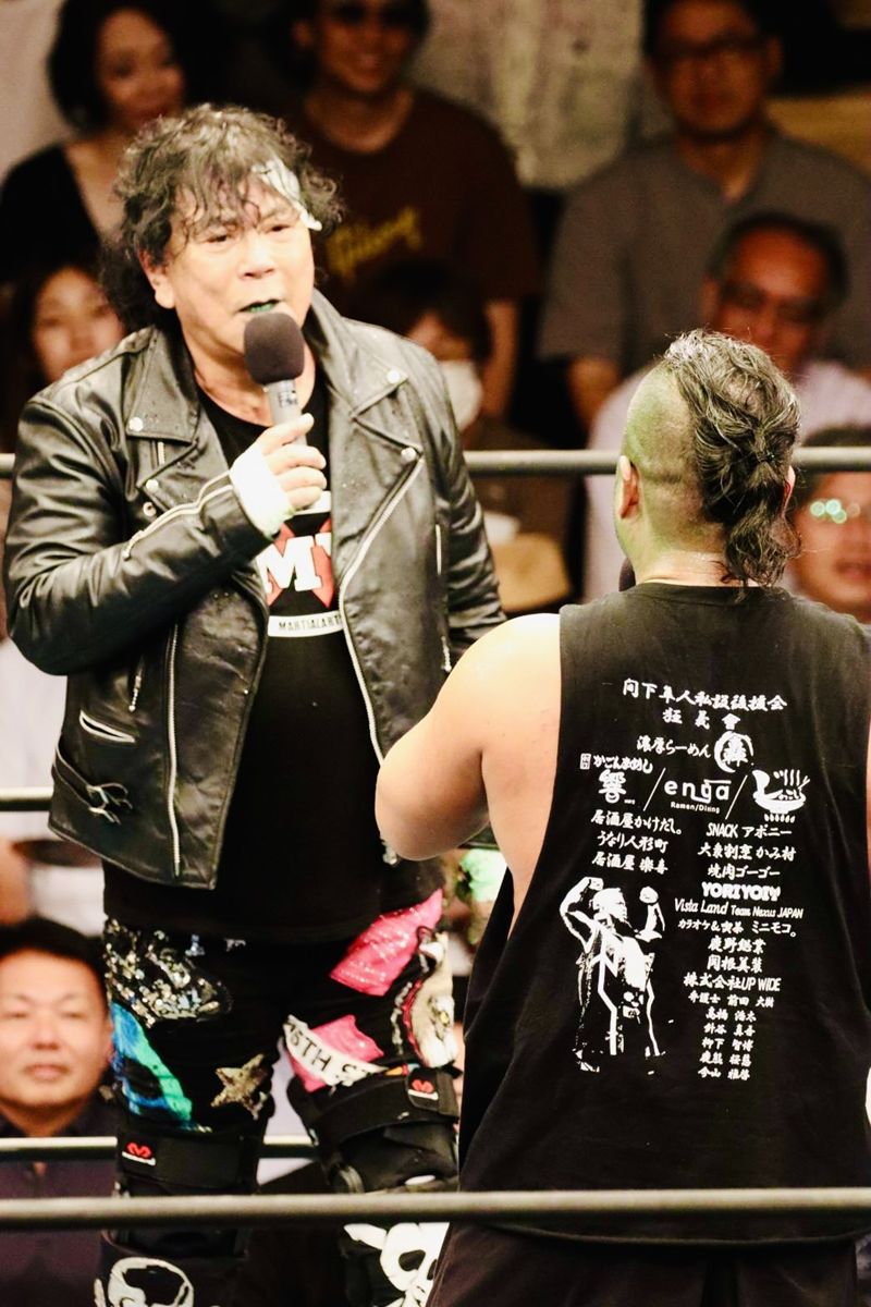 また、大仁田は間下のタッグパートナーの関根にも言及し、「シュレック、お前、顔怖いよ(笑)。だけどさ、俺はお前をある種尊敬している。警察を辞めてまで、好きなプロレスをやる。ある種偉大だよ。握手しよう」と近寄ったものの、シュレックからは握手を拒絶された。