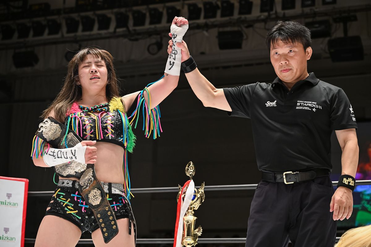 女子プロレス団体スターダム9月10日の東京・後楽園ホール大会で行われたハイスピード選手権試合は、王者・星来芽依と挑戦者・水森由菜の一戦は、10分時間切れ引き分け。