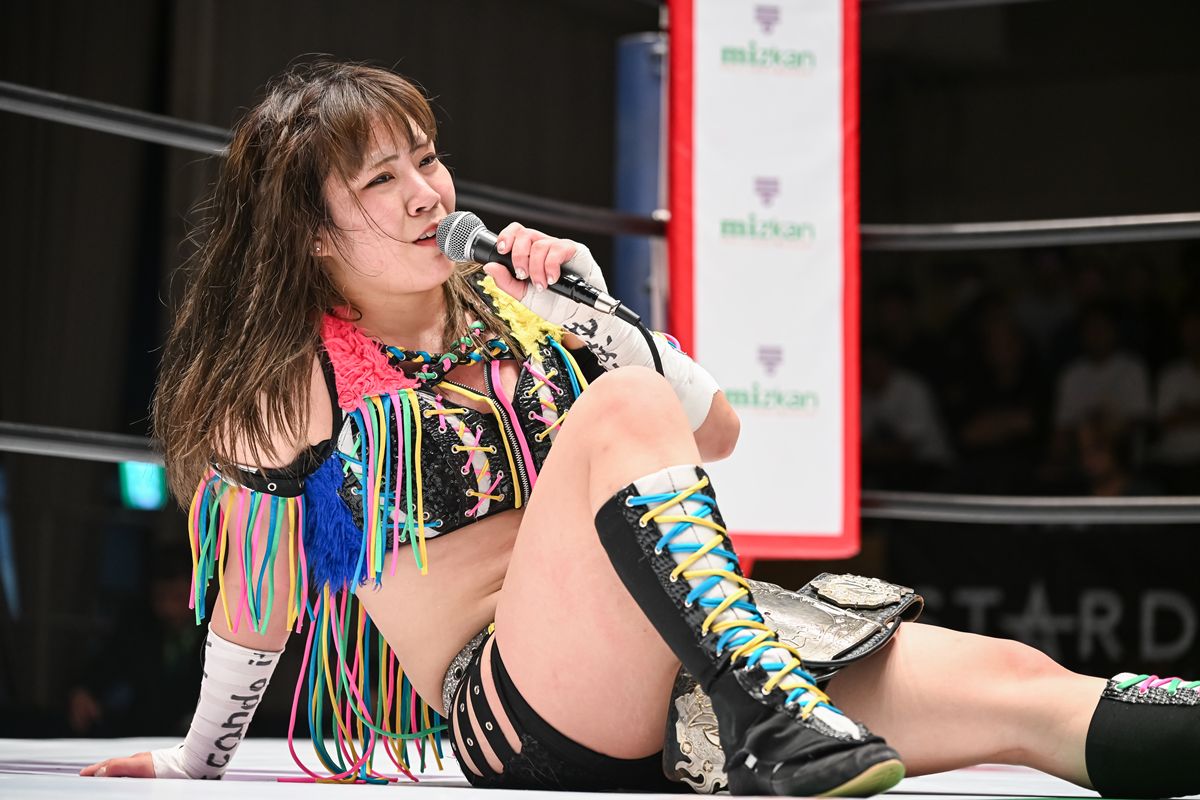 王座を防衛したにも関わらず、リング上で涙を浮かべた星来は、「なんとか防衛できたのに、10分3本勝負で初めて決着付けられなかった。なんかモヤモヤする……」とその胸の内を吐露。