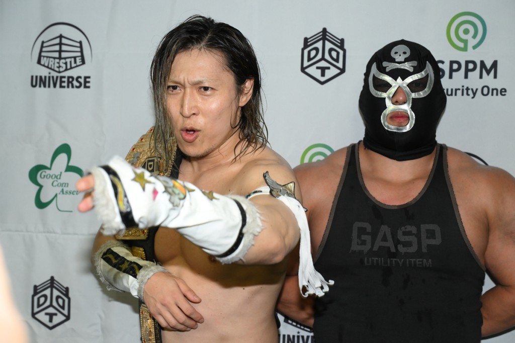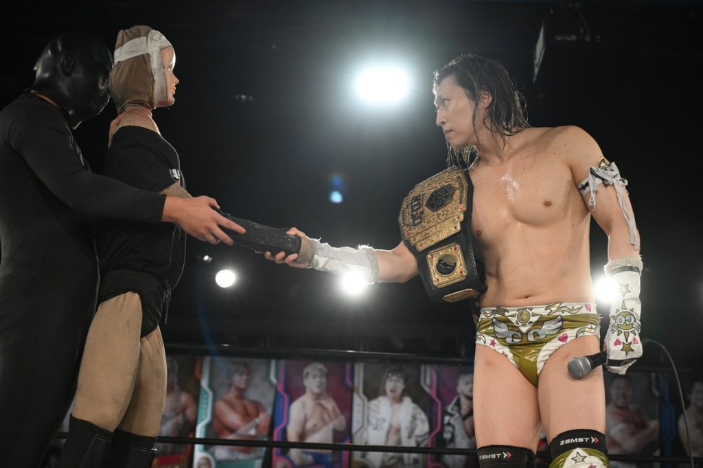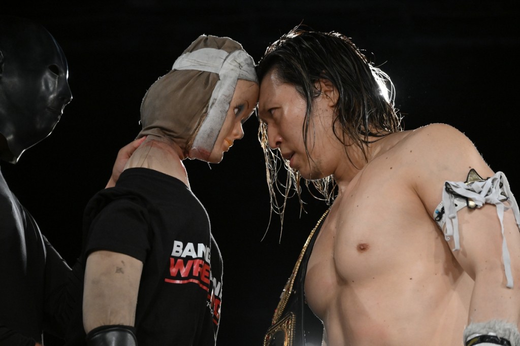 バックステージで平田は「今日で6度(自称)の防衛を果たしました。しっかり防衛を重ねて、後楽園でヨシヒコ、伝説に残るような試合をしましょう」と意欲。アシストしたボディガードには「今後もしっかり(報酬を)払うんで、よろしく頼むよ」と継続雇用を願い出た。かたや、ヨシヒコは何を聞いてもノーコメントだった。