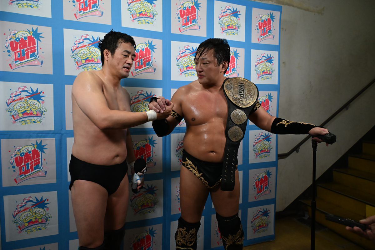 この王者からの“スカウト”に、海野は「本隊ってものが変わり始めて、優也さんと組むことも増えてきて、タイチさんという先輩、石井さんという先輩が胸を貸してくれるのであれば、やってもありかなっていう。魅力的なベルトだなと思いますね」と前向きな姿勢を見せる。