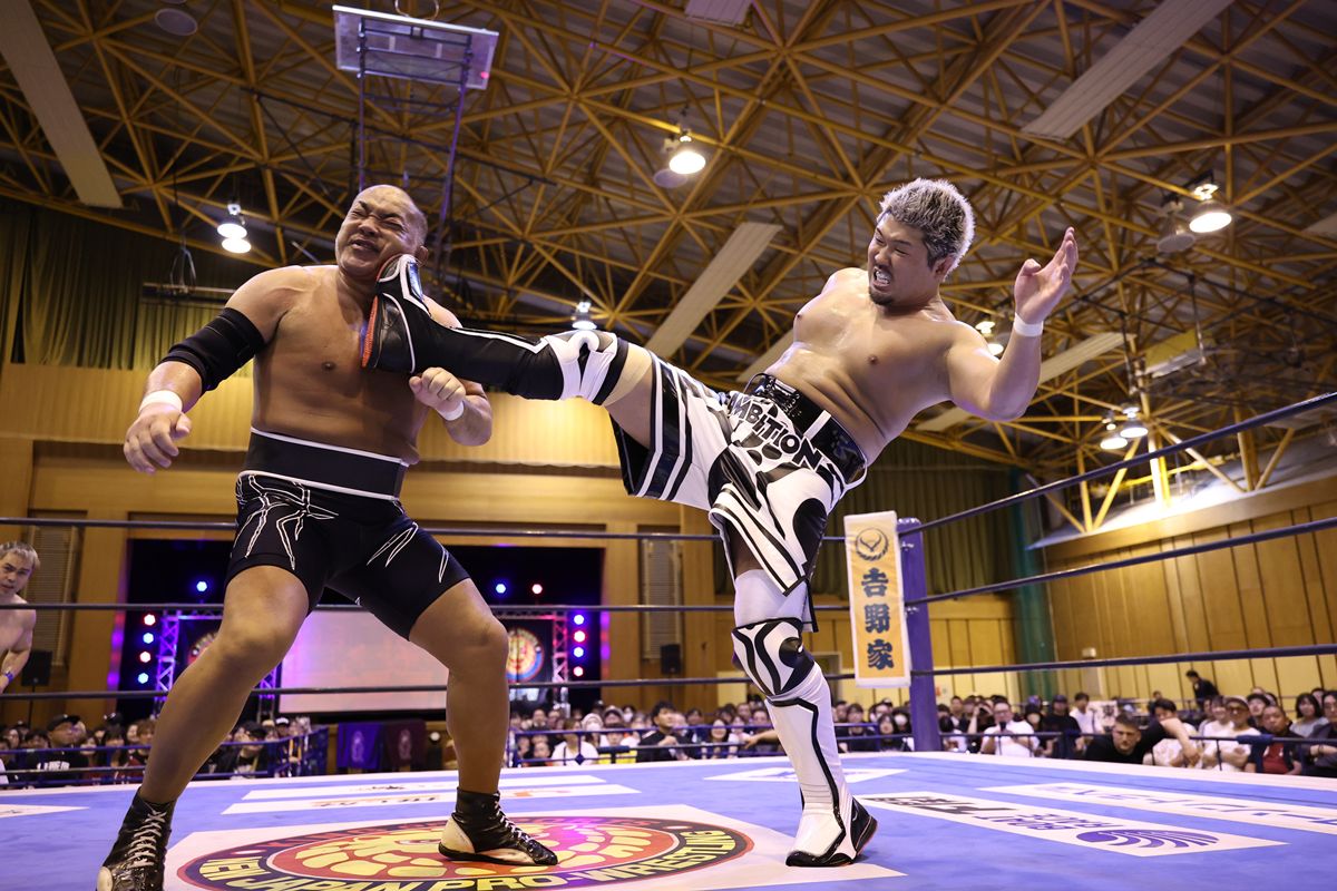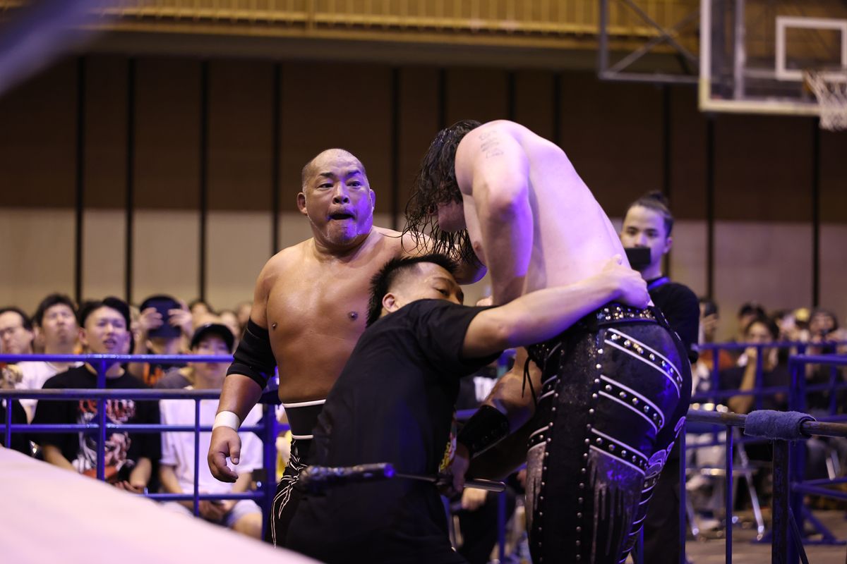王者組の石井智宏&タイチと、挑戦者組の“K.O.B”ことYuto-Ice&OSKARによる戦いは、試合後まで続く大乱闘に発展。リング上の戦い以上に、バックステージで繰り広げられた“舌戦”が、両者の闘争心を剥き出しにした。