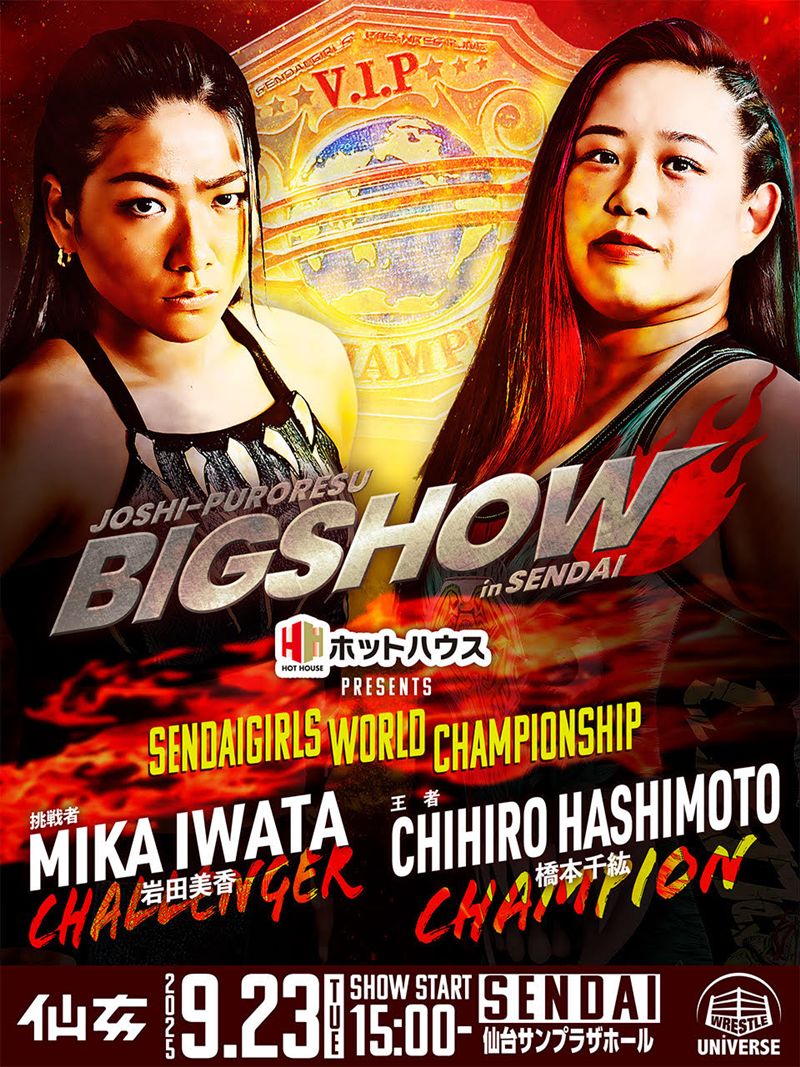 メインイベントでは、王者・橋本千紘に岩田美香が挑むセンダイガールズワールド選手権試合が行われる。