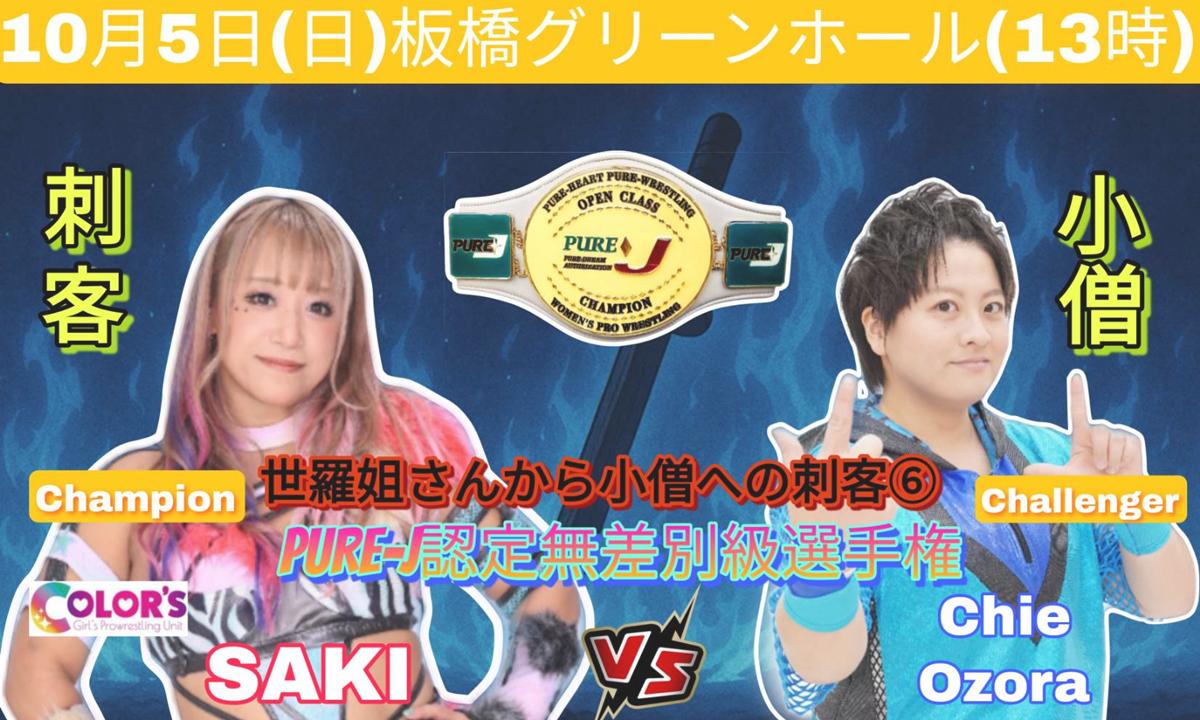 この無差別級選手権試合は、現在多団体で活躍する世羅りさが、PURE-Jの未来を担う大空ちえの成長のために送り込む「世羅姐さんから小僧への刺客」シリーズの第6弾として行われる。しかし、今回“刺客”として大空の前に立ちはだかるのは、他ならぬ現無差別級王者のSAKI。挑戦者であると同時に、試練を乗り越えなければならない対象でもあるという、大空にとってはあまりにも過酷な一戦となった。