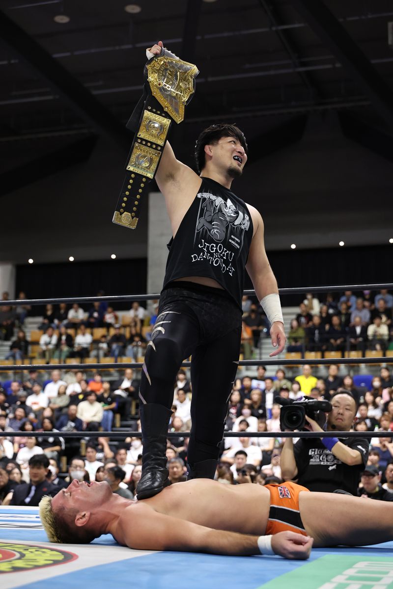 この一撃でIWGP世界ヘビー級王者を完全に失神KOに追い込むと、倒れたザックの上にベルトを置き、見下ろしながらリングを去っていった。