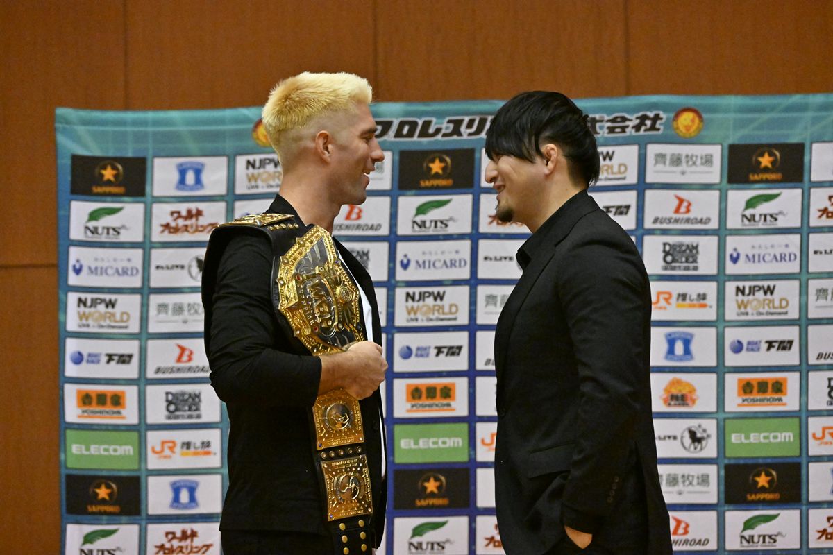 【新日本】9.28神戸決戦へ調印式で火花!王者ザック「EVILの陰に隠れて何ひとつ成し遂げていない」と成田を痛烈批判
