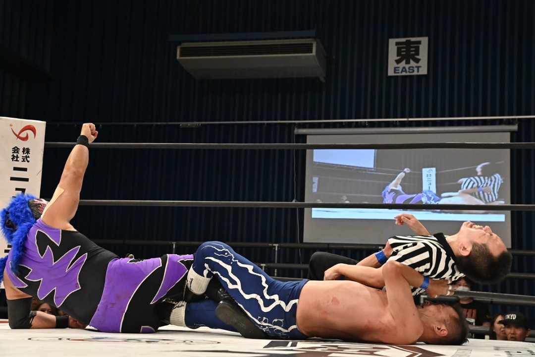 〇大仁田厚、櫻井匠、パンディータ(11分22秒、体固め)