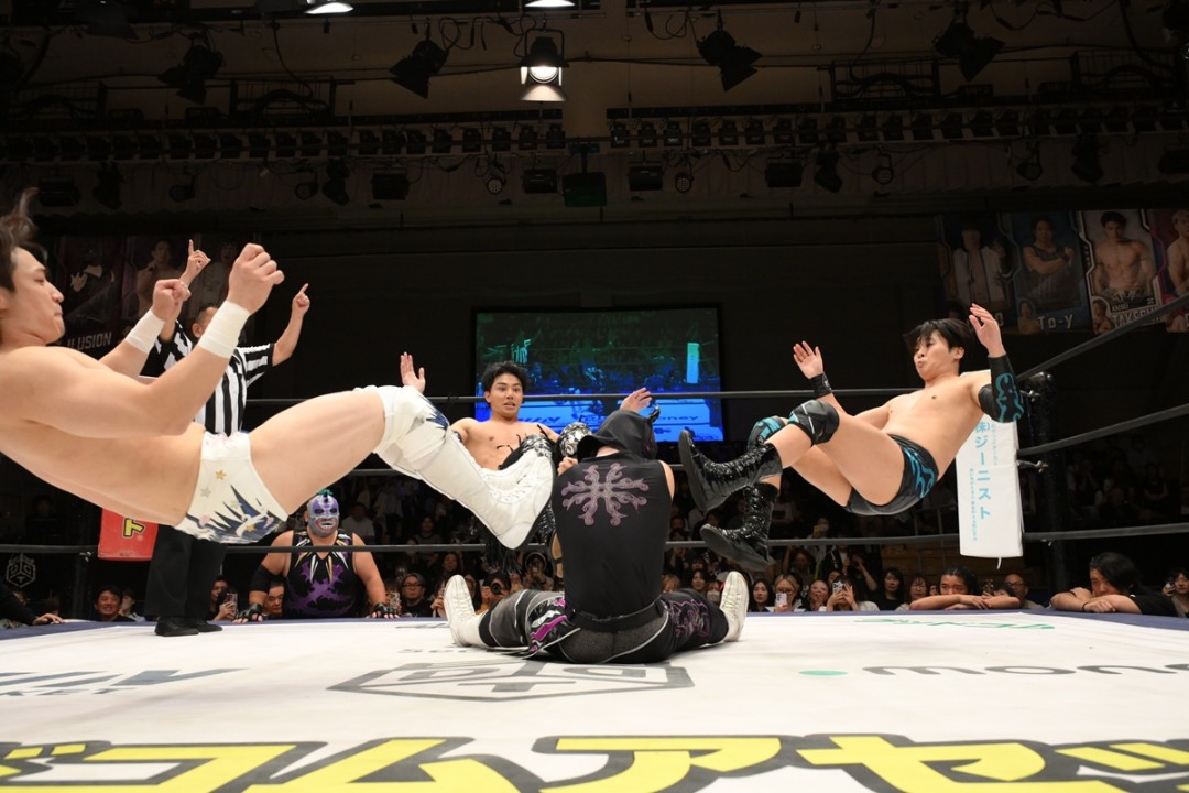 飯野雄貴&納谷幸男 vs MAO&KANON with KIMIHIRO vs 彰人&須見和馬