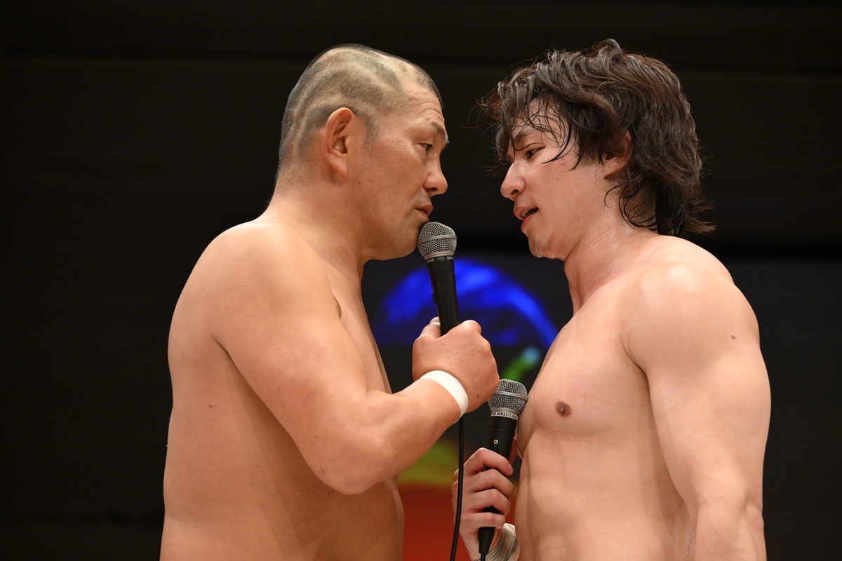 鈴木が「オイ、上野。それからDDT、これで制圧リーチだ!」と言えば、上野は「僕は鈴木さんに負けた日から、鈴木みのるを倒すためにやってきてます。やるんだったら、このベルト持って、鈴木みのるを呼ばないとやれないと思ってましたんで。鈴木さん、DDT制圧はできません。丸腰でまた少し離れたところに行ってもらおうと思います」と早くも勝利宣言。
