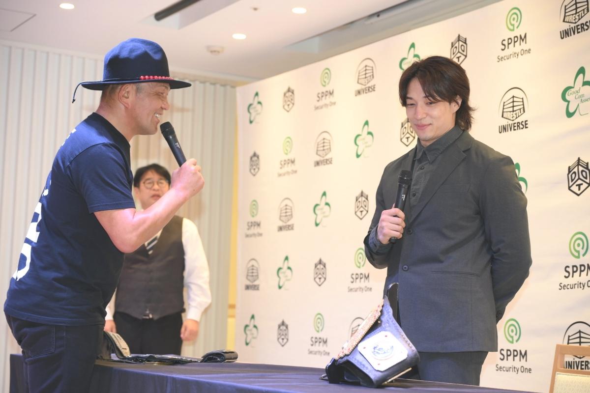 質疑応答になると、挙手した鈴木は「『週刊パイルドライバー』の鈴木で~す。上野選手に質問で~す。どうして、鈴木みのるが持ってるこのベルトが欲しいんですか?」と問う。上野は「鈴木みのるというプロレス王が僕から獲って、世界に広げようとしてくれている。鈴木みのるが愛を持って育ててくれている素敵なベルト。何より、自分が持ってた時より、もっとすごくて、怖くて、プロレス王どころじゃないくらい、人間力もすごい鈴木みのるが持ってるUNIVERSALのベルトだから獲りたいと思いました」と回答。