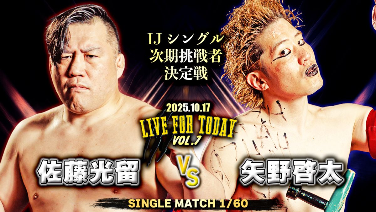 天龍プロジェクトは、10月17日(金)に東京・新木場1stRINGで開催する「LIVE FOR TODAY vol.7」のメインイベントとして、インターナショナルジュニアヘビー級(IJ)シングル王座の次期挑戦者決定戦、佐藤光留対矢野啓太の一戦を行うことを発表した。