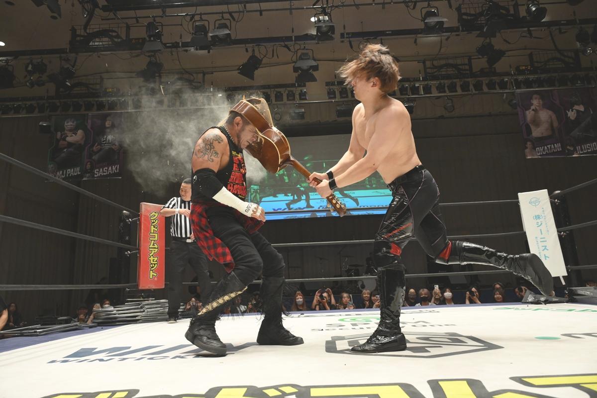 DDTプロレスが10月2日、東京・後楽園ホールで佐々木大輔デビュー20周年記念大会「CHARISMANIAxMANIAxMANIA supported by HEADPHONES PRESIDENT」を開催した。ダムネーションT.Aの岡谷英樹が、“デスマッチのカリスマ”葛西純とのハードコアマッチでの一騎打ちに挑むも惜敗した。