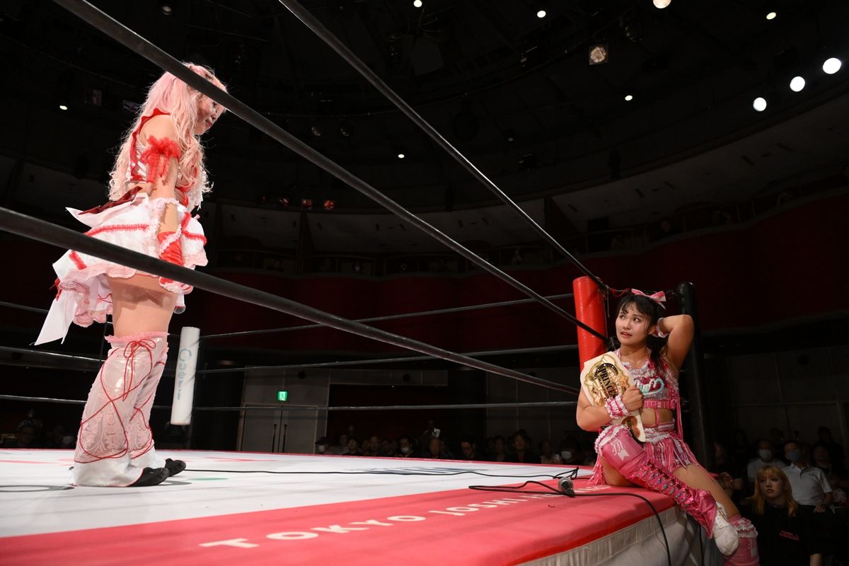 東京女子プロレスが10月4日、東京・品川プリンスホテル内クラブeXで「TJPW Autumn Victory in SHINAGAWA」を開催した。18日の後楽園ホール大会でのプリンセス・オブ・プリンセス選手権試合(王者=渡辺未詩vs挑戦者=愛野ユキ)の前哨戦第2ラウンドは愛野が制して、前回敗れたリベンジを果たした。