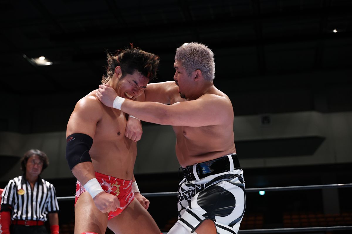 新日本プロレス10月4日の神奈川・平塚大会で行われたIWGPタッグ選手権試合の前哨戦は、王者“K.O.B”ことYuto-Ice&OSKAR組が勝利。