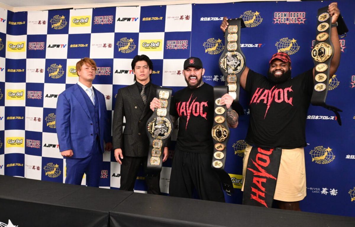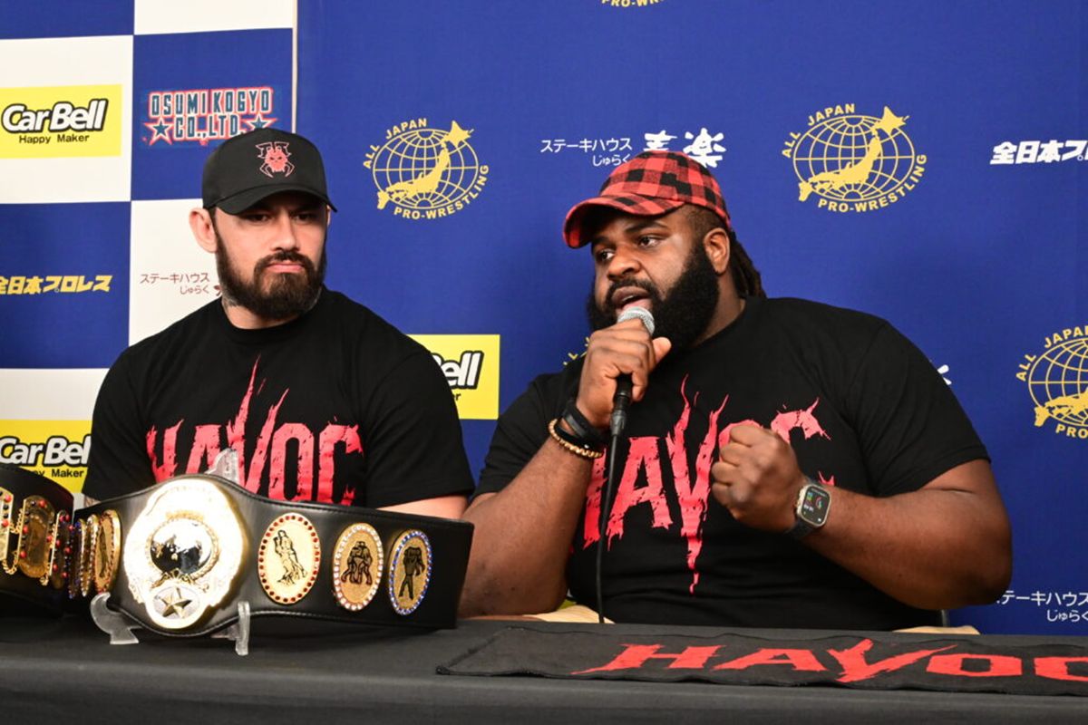 対する王者組は、挑戦者二人をシングルプレイヤーとしては高く評価。しかし、ザイオンは「彼らは組んだことがない。逆に読めないところがある」と警戒しつつも、「オデッセイとのタッグでHAVOCがこのベルトを防衛してみせる」と断言。オデッセイも「俺たちは仲もいいし、多くの練習を一緒に積んできた。心と心のつながりがある」と、タッグチームとしての絆では負けないと強調した。