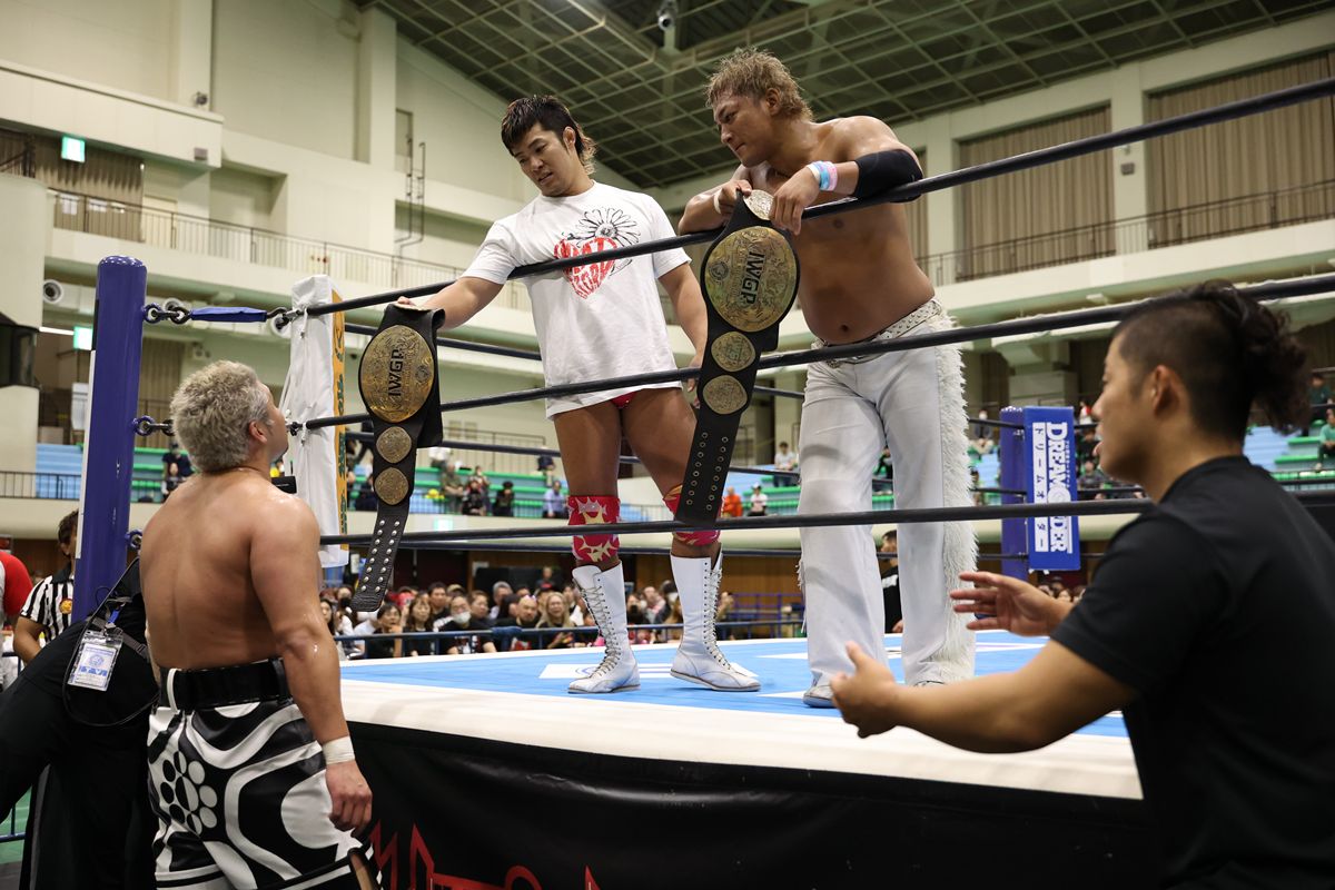 そして海野と上村は、王者組が置き忘れたIWGPタッグのベルトを高々と掲げ、両国での王座奪取を猛アピール。ベルトを奪い返した王者組は、怒りの表情でリングを後にした。