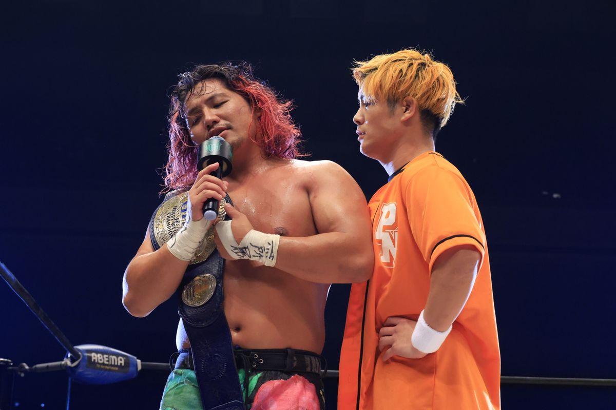 そして、宮脇とのノンタイトル戦については、「俺としてはいいよ。俺としてはいいよ。ただね、お客さんがそう簡単に許さないんだわ。今はさ、そういうのが難しい時代になってきたからね。でも、それを覆して、会社に物言いをして、タイトルマッチになるならなるで、俺としては構いません。ていうかさ、ノンタイトルのシングルマッチだけど、俺が負けたら返上するでしょう、普通に考えて。その時は改めて狙いにいきなよ。まず俺に勝つことに専念しなさい」と、王者としての矜持を示した。