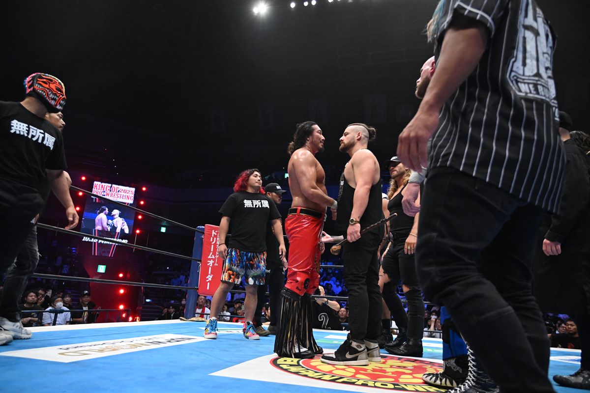 その時、リングサイドにWAR DOGSのメンバーが姿を現し、リング上には無所属のメンバーも集結。一触即発の空気が流れた。