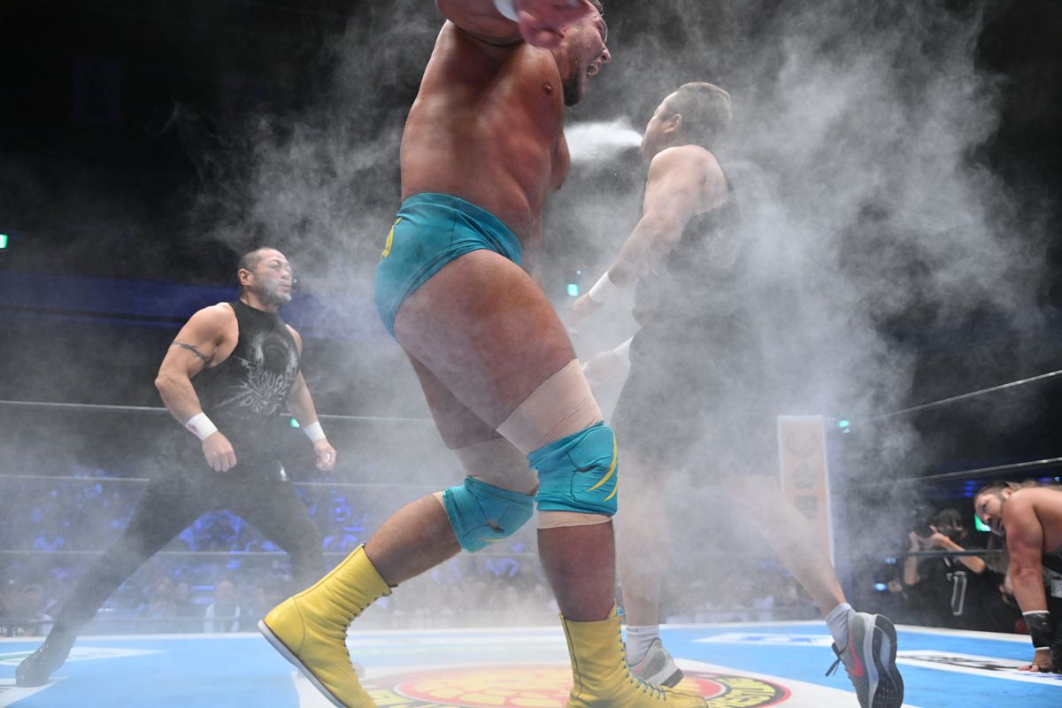 【新日本】EVIL、H.O.T.総出の蹂躙でNEVER王座強奪!試合後には柔道金メダリスト・ウルフ アロンがボルチンを救出「1月4日デビュー戦、EVILとやらせてください」