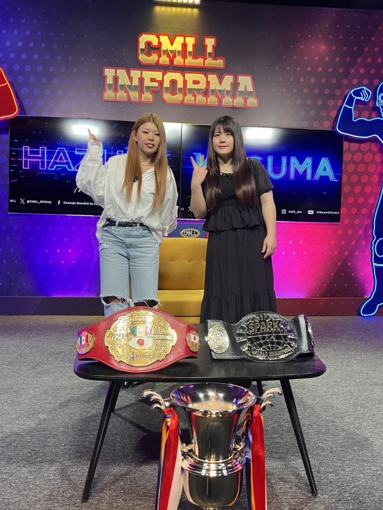 また葉月は、来墨前の11日はスターダム後楽園大会にて、コグマからCMLL日本女子王座を奪取。「コグマがベルトを取ったのがアクシデントというのもあるので、チャンピオンでいていいのかなという不安もあったと思うので、自分は名乗りを上げたんですけど、(アメリカの)SPARKのベルトを持っていて、次はCMLLが取れる可能性が出てきた。今まで二冠を巻いたことがないので、このチャンスを自分がモノにしないといけないなって思ったし、普段タッグで組んでるコグマだからこそ、シングルで見せれるものがあるのかなと思って11日の試合は思いっきり戦いました」と盟友・コグマとのタイトル戦を振り返った。