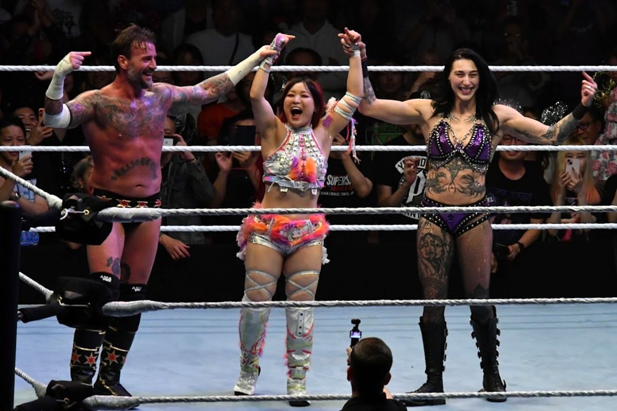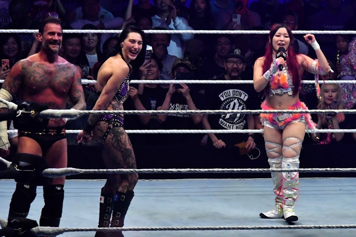 「日本のみんな、ただいま!みんなに会えて本当にうれしいです。私たちはコロナ禍だったり、いろんな困難を乗り越えて、この瞬間をみんなで共有しています。こんな奇跡ありますか?CMパンク、リア・リプリー、たくさんのスーパースターが海を越えてやってきました。みんながWWEのスーパースターを好きなように、WWEスーパースターも日本のみなさんのことを愛してます。明日も会いましょう」