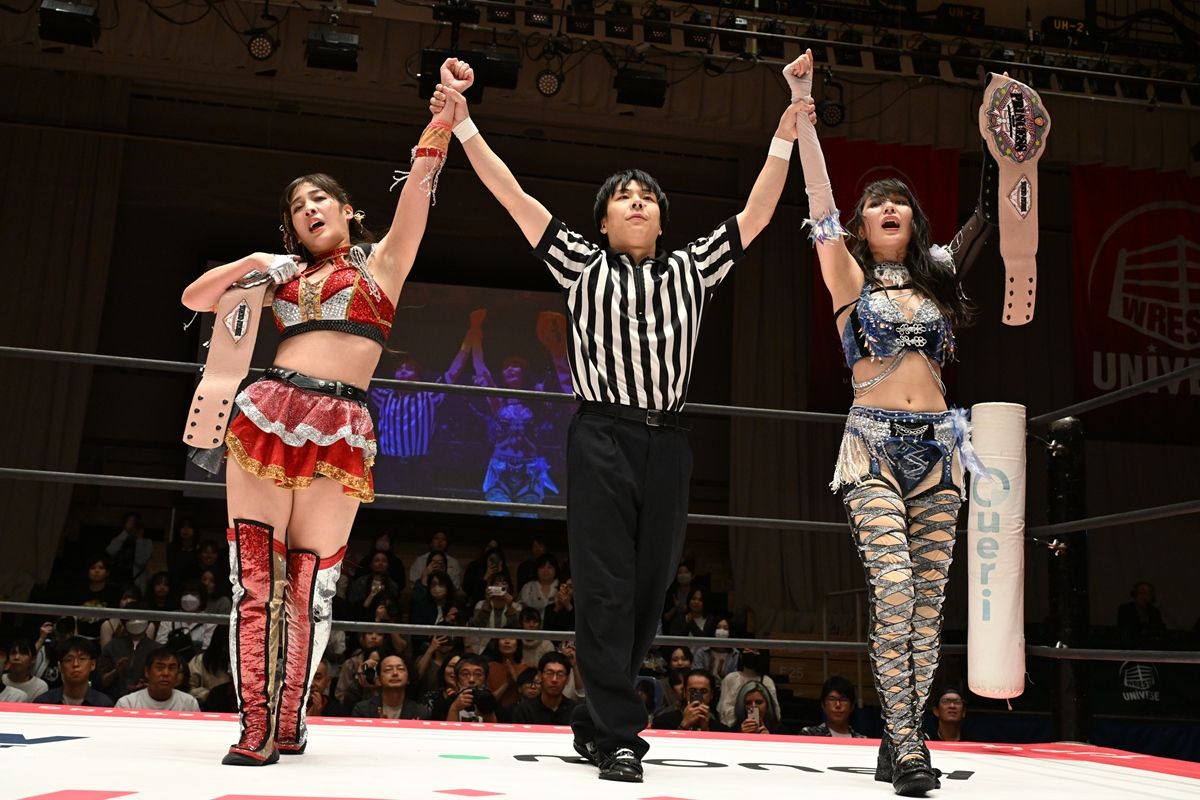 東京女子プロレスが10月18日、東京・後楽園ホールで「Additional Attack ’25」を開催した。プリンセスタッグ王者組のOber Eats(上福ゆき&上原わかな)がHot Shot(まなせゆうな&凍雅)の挑戦を退け、初防衛に成功した。オーバーイーツには11・9後楽園でHIMAWARI&鈴木志乃のフレッシュコンビがチャレンジする。