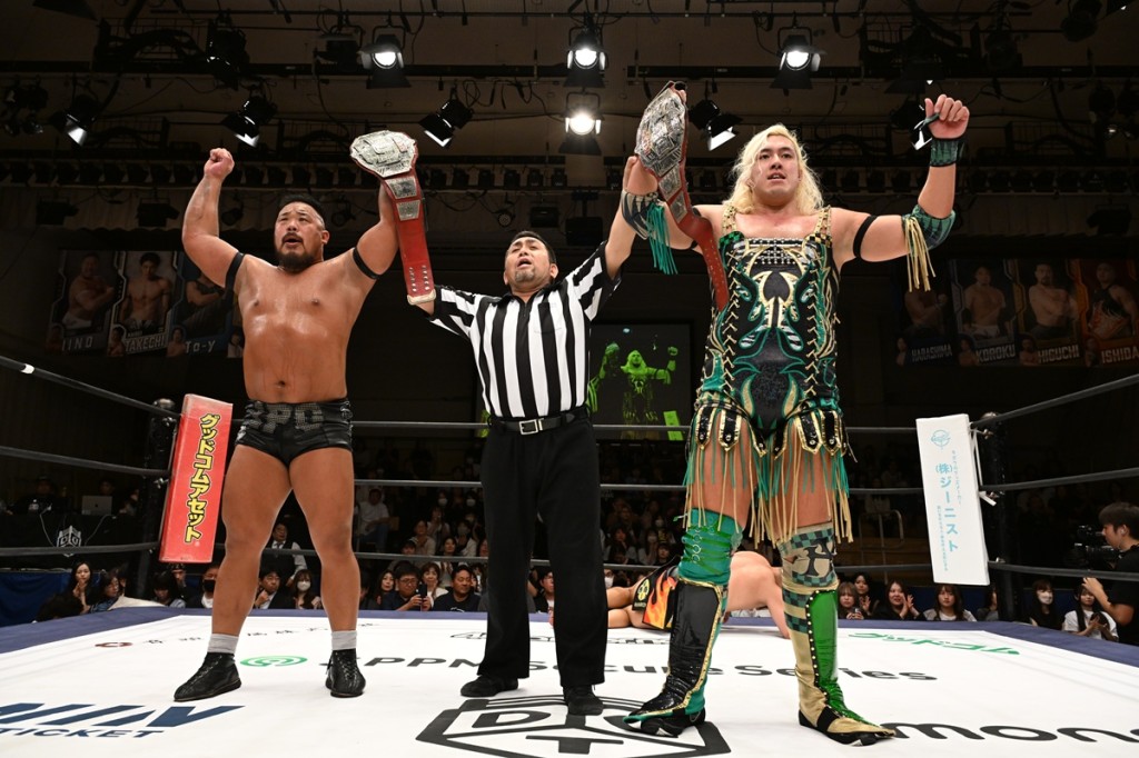 【DDT】飯野雄貴&納谷幸男が樋口和貞&石田有輝を退け、KO-Dタッグ王座V5!11・3両国でMAO&KANON、橋本千紘&優宇と3WAY戦で激突