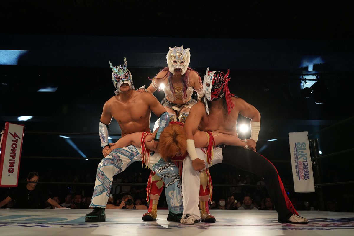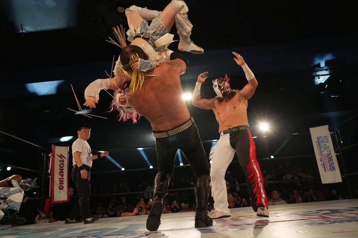 女子プロレス団体スターダムの“夜空に踊るスカイ・タイガー”スターライト・キッドのデビュー10周年記念興行『SLK 10YEARS ANNIVERSARY キッちゃんファミリー危機一髪!?』が10月20日、東京・新宿FACEで超満員札止めの中で開催された。